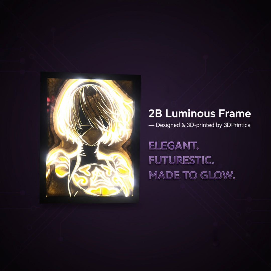 Μυστηριώδης. Ισχυρή. Φτιαγμένη να λάμπει. Φώτισε τον χώρο σου με το εμβληματικό presence της 2B από το NieR: Automata. Το 2B Luminous Frame, χειροποίητο και 3D-printed από τη 3DPrintica, συνδυάζει το android elegance και τη warrior δύναμη σε εκθαμβωτικό LED φως—ιδανικό για gamers, anime συλλέκτες και λάτρεις των unforgettable heroines.