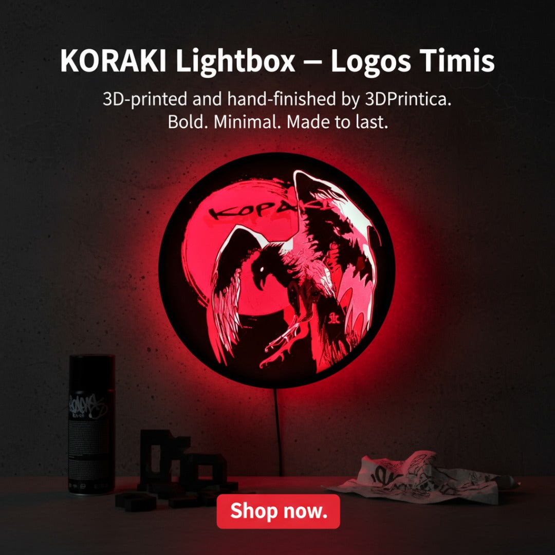 Χειροποίητα σχεδιασμένο και 3D-εκτυπωμένο από τη 3DPrintica, το Κοράκι – Λόγος Τιμής Anaglyph Lightbox μετατρέπει το εμβληματικό raven σε σύμβολο φωτός — τολμηρό, minimal και διαχρονικό.