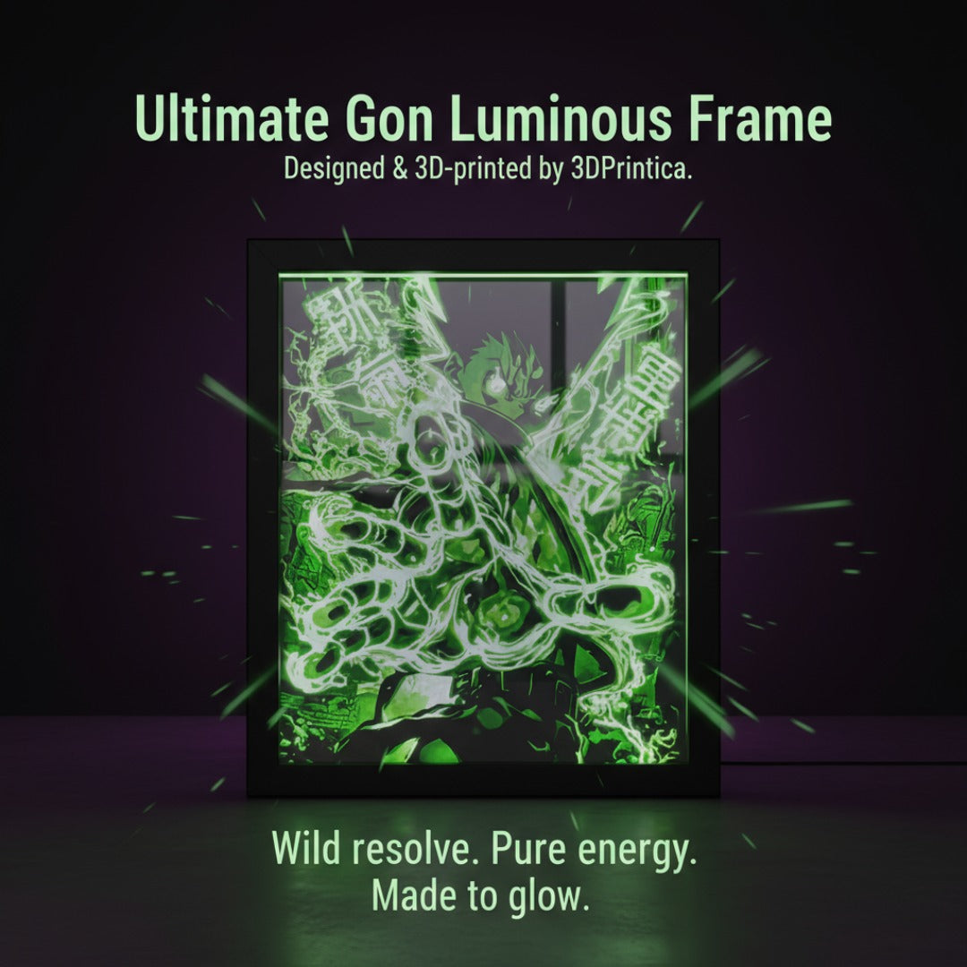 Αδάμαστη θέληση. Αγνή ενέργεια. Φτιαγμένο να λάμπει. Ξεκλείδωσε το απόλυτο transformation του Gon Freecss με το Ultimate Gon Luminous Frame, χειροποίητο και 3D printed από τη 3DPrintica. Λουσμένο σε έντονο πράσινο LED φως, το φωτεινό αυτό frame εκπέμπει τη wild power του Gon—τέλειο για anime φαν, συλλεκτικό display και χώρους που θέλουν δόση περιπέτειας.